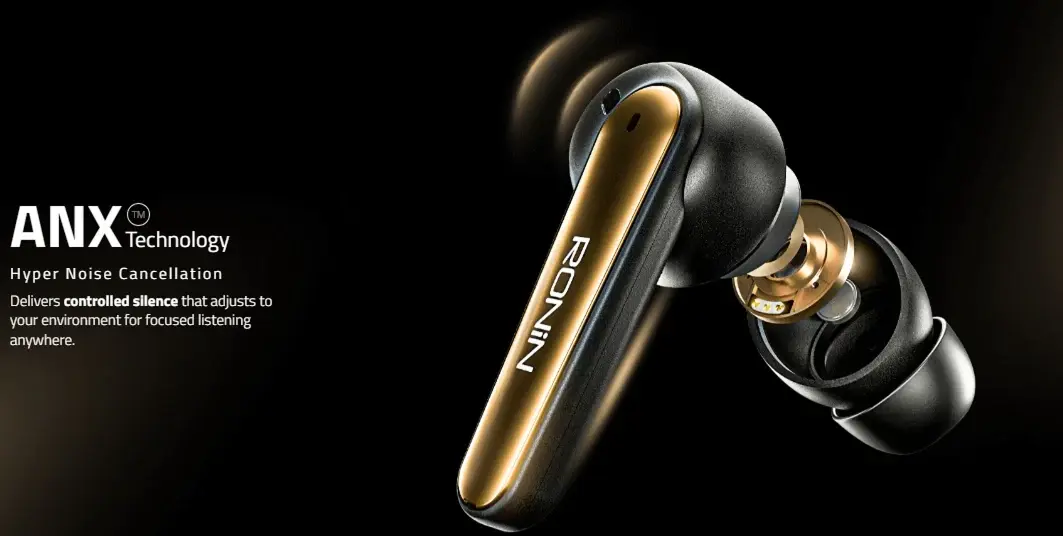R-7065 Eclipse, designed for endurance with a powerful 700 mAh battery, enjoy up to 6 hours of music playtime, 80 hours on standby. Adaptive ANC and Qnx™ Environmental Noise Cancellation combine with dual-mic beamforming for crystal-clear calls and immersive, cinematic sound. Powered by the Ronin Studio app, Eclipse lets you update firmware, adjust your EQ, control ANC levels, and activate artist-inspired sound presets. Wrapped in a sleek matte dual-tone finish, it’s audio control, reimagined right from your pocket.